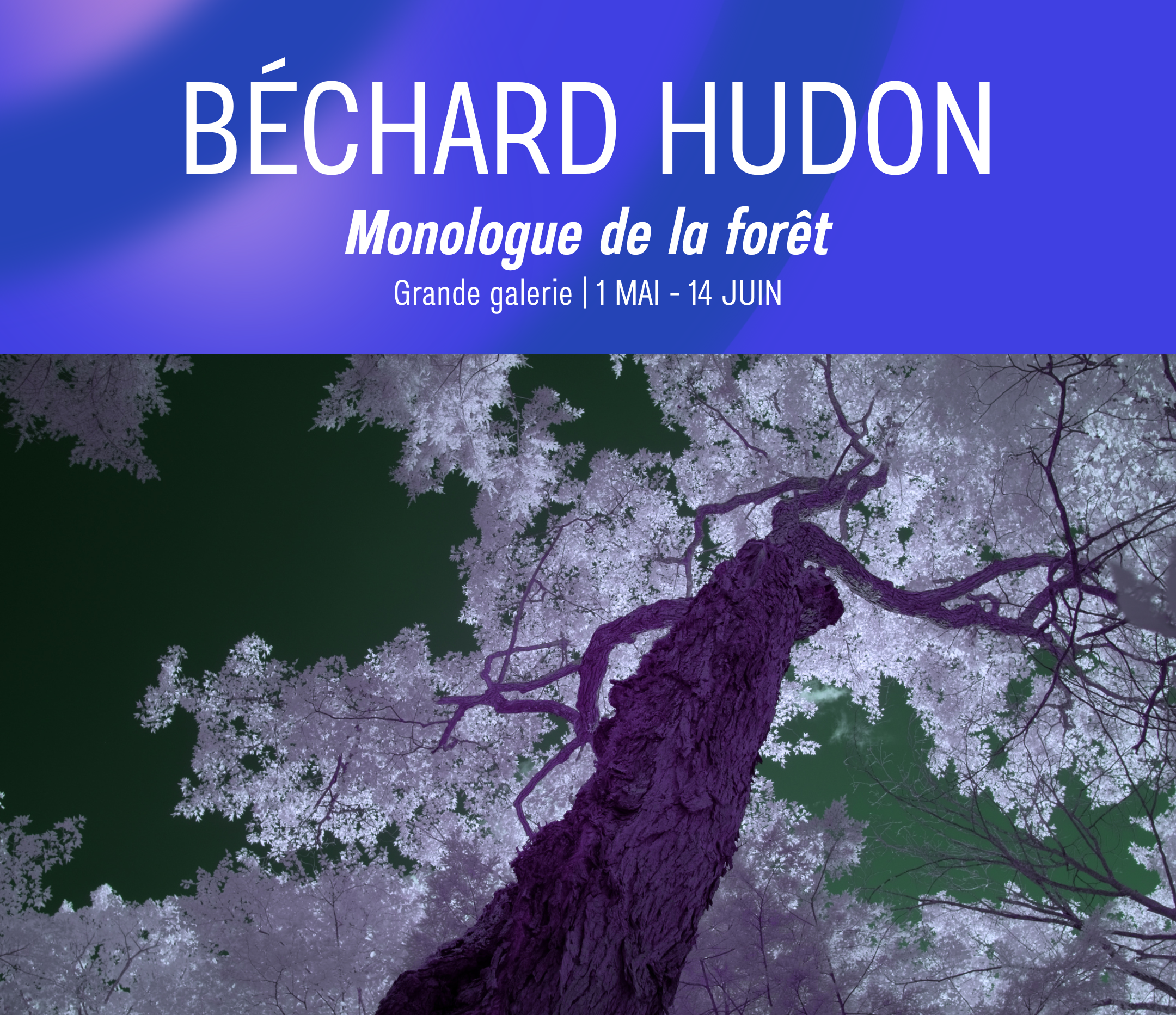 In the summer of 2024, Béchard Hudon began a research project in partnership with Galerie UQO and researchers from ISFORT (Institute of temperate forest sciences, UQO). As part of this project, they have undertaken several research expeditions in Outaouais forests, which they will continue until 2026. During their residency at Centre SAGAMIE, they will work on a series of photographs they took in old growth forest, as well as in others that are currently under observation as part of experimental frameworks. They used a full spectrum camera to extend our gaze beyond the visible light spectrum and to thus reveal what goes on in the depths of the forest. With a diplomatic sensitivity to other species, they wish to highlight the crucial role that these forest habitats play in the preservation of our interspecies relationships in a “politics of interdependencies.”
