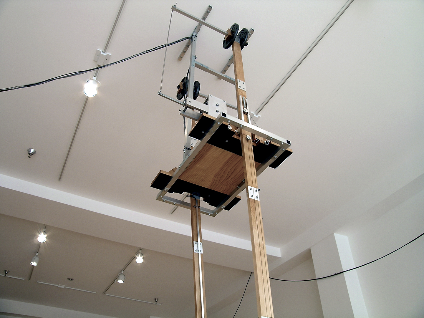 Bois, aluminium, brosses, papier, moteurs, microphones, électroniques, caméra vidéo, amplificateurs, haut-parleurs, interface midi, interface audio, ordinateur, MaxMsp.